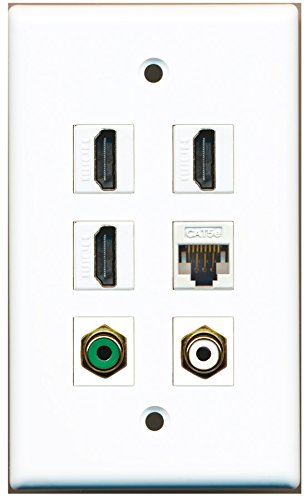 RiteAV - 3 HDMI 1 Port RCA White 1 Port RCA Green 1 Port Cat5e Ethernet White Wall Plate