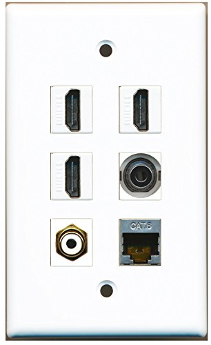 RiteAV - 3 HDMI 1 Port RCA White 1 Port Shielded Cat6 Ethernet 1 Port 3.5mm Wall Plate