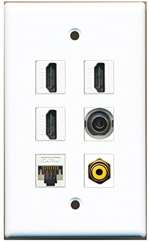 RiteAV - 3 HDMI 1 Port RCA Yellow 1 Port 3.5mm 1 Port Cat5e Ethernet White Wall Plate