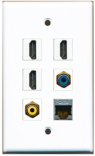 RiteAV - 3 HDMI 1 Port RCA Yellow 1 Port RCA Blue 1 Port Shielded Cat6 Ethernet Wall Plate