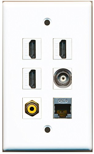 RiteAV - 3 HDMI 1 Port RCA Yellow 1 Port Shielded Cat6 Ethernet 1 Port BNC Wall Plate