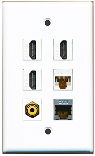 RiteAV - 3 HDMI 1 Port RCA Yellow 1 Port Shielded Cat6 Ethernet 1 Port Cat6 Ethernet White Wall Plate