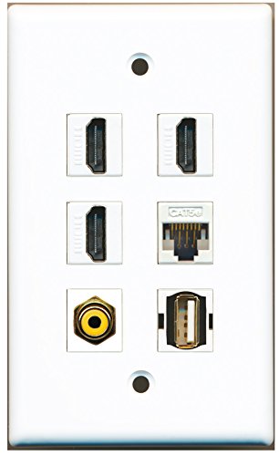 RiteAV - 3 HDMI 1 Port RCA Yellow 1 Port USB A-A 1 Port Cat5e Ethernet White Wall Plate