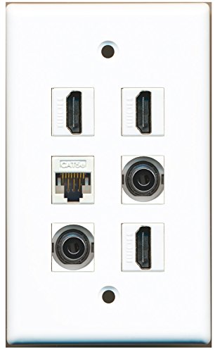RiteAV - 3 HDMI 2 Port 3.5mm 1 Port Cat5e Ethernet White Wall Plate