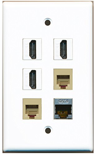 RiteAV - 3 HDMI 2 Port Phone RJ11 RJ12 Beige 1 Port Shielded Cat6 Ethernet Wall Plate