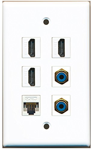 RiteAV - 3 HDMI 2 Port RCA Blue 1 Port Cat5e Ethernet White Wall Plate