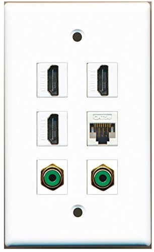RiteAV - 3 HDMI 2 Port RCA Green 1 Port Cat5e Ethernet White Wall Plate