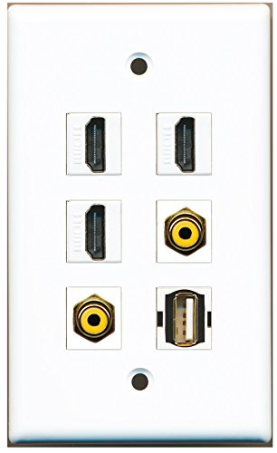 RiteAV - 3 HDMI 2 Port RCA Yellow 1 Port USB A-A Wall Plate