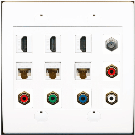 RiteAV 3 HDMI 3 Cat6 5 x RCA Component RGB Stereo Coax Cable TV Wall Plate White