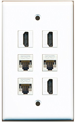 RiteAV - 3 HDMI 3 Port Cat5e Ethernet White Wall Plate