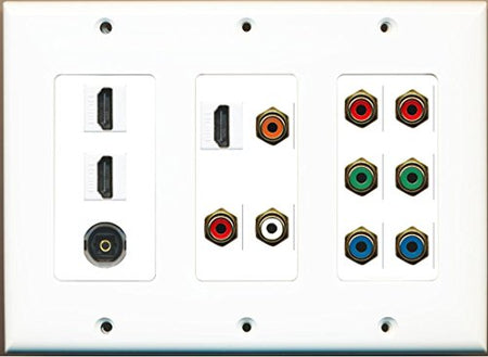RiteAV 3 HDMI (9 RCA) Orange Digital Red-White Component RGB Toslink Wall Plate
