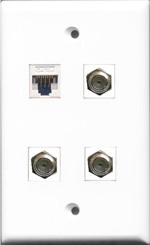 RiteAV - 3 Port Coax Cable TV- F-Type and 1 Port Cat5e Ethernet White Wall Plate