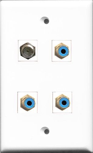 RiteAV - 3 Port RCA Blue and 1 Port Coax Cable TV- F-Type Wall Plate