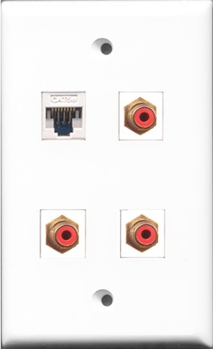 RiteAV - 3 Port RCA Red and 1 Port Cat5e Ethernet White Wall Plate
