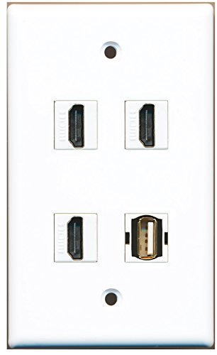 RiteAV - 3 x HDMI and 1 x USB 2.0 A/A Female Port Wall Plate White