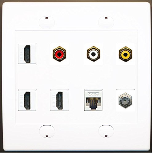 RiteAV - 3 x RCA - 3 x HDMI and 1 x Cat5e 1x Coax Cable TV Port Wall Plate White