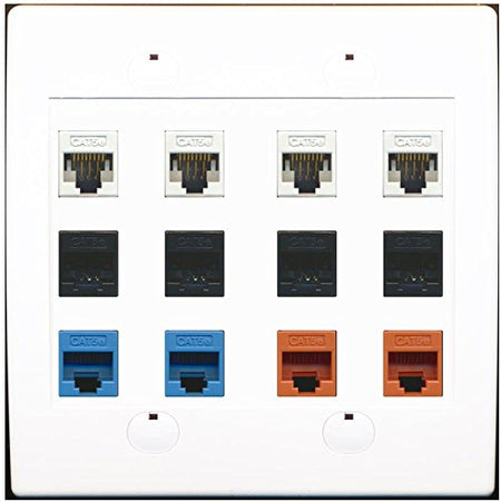 RiteAV 4 Cat5E 4 Cat5E Black 2 Cat5E Blue 2 Cat5E Orange Wall Plate White