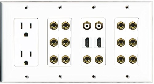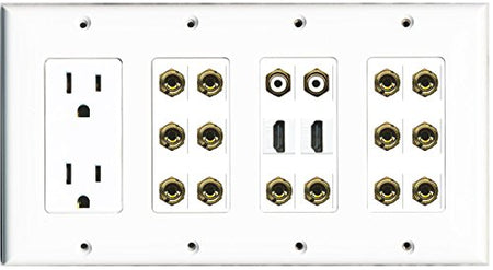 RiteAV - (4 Gang) 15A Power Outlet 2 HDMI 2 RCA White 14 Banana Wall Plate White