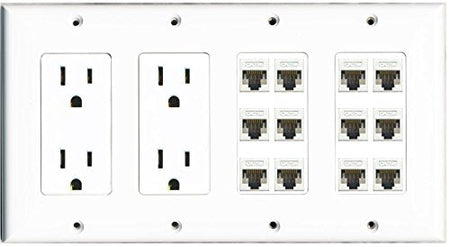 RiteAV - (4 Gang) 2 15A Power Outlet 12 Cat5e White Wall Plate White