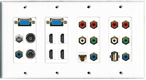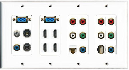 RiteAV (4 Gang) 2 Svga 4 HDMI Coax Cat6 2 Component Video 3.5mm Toslink USB Wall Plate