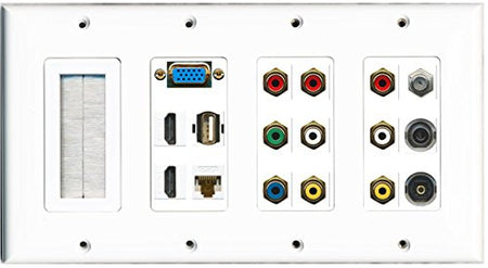 RiteAV (4 Gang) Brush Svga 2 HDMI Coax Cat6 2 Composite RGB 3.5M Toslink USB Wall Plate