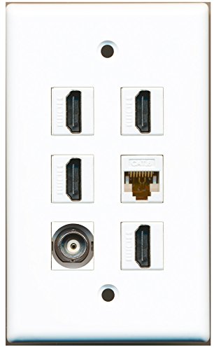 RiteAV - 4 HDMI 1 Port BNC 1 Port Cat6 Ethernet White Wall Plate