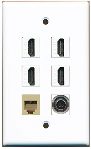 RiteAV - 4 HDMI 1 Port Phone RJ11 RJ12 Beige 1 Port 3.5mm Wall Plate