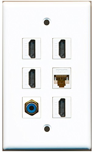 RiteAV - 4 HDMI 1 Port RCA Blue 1 Port Cat6 Ethernet White Wall Plate