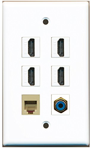 RiteAV - 4 HDMI 1 Port RCA Blue 1 Port Phone RJ11 RJ12 Beige Wall Plate