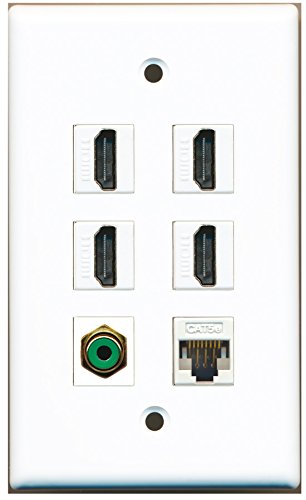 RiteAV - 4 HDMI 1 Port RCA Green 1 Port Cat5e Ethernet White Wall Plate