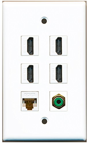 RiteAV - 4 HDMI 1 Port RCA Green 1 Port Cat6 Ethernet White Wall Plate