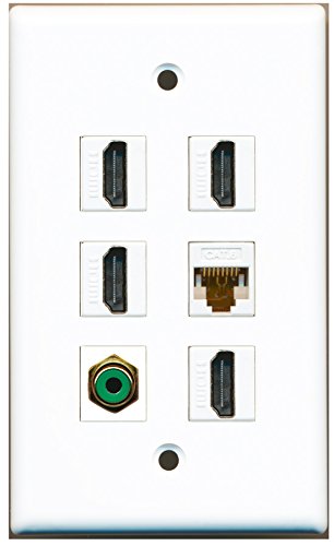 RiteAV - 4 HDMI 1 Port RCA Green 1 Port Cat6 Ethernet White Wall Plate