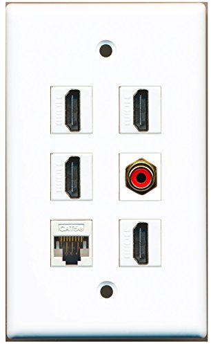 RiteAV - 4 HDMI 1 Port RCA Red 1 Port Cat5e Ethernet White Wall Plate