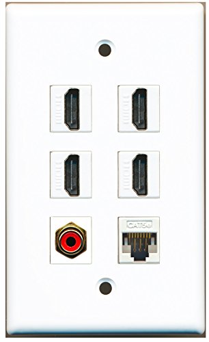 RiteAV - 4 HDMI 1 Port RCA Red 1 Port Cat5e Ethernet White Wall Plate