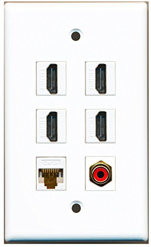 RiteAV - 4 HDMI 1 Port RCA Red 1 Port Cat6 Ethernet White Wall Plate
