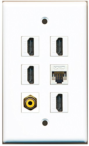 RiteAV - 4 HDMI 1 Port RCA Yellow 1 Port Cat5e Ethernet White Wall Plate