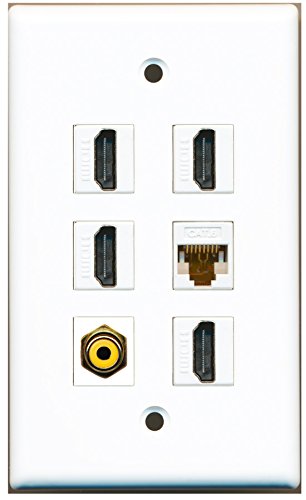 RiteAV - 4 HDMI 1 Port RCA Yellow 1 Port Cat6 Ethernet White Wall Plate