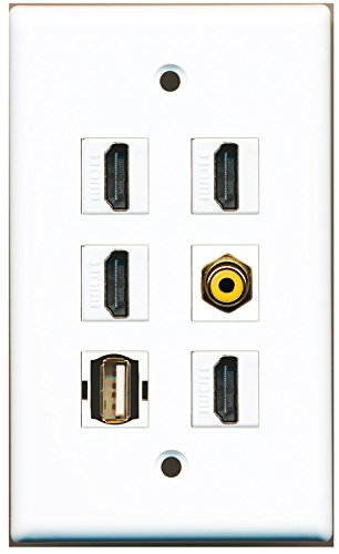 RiteAV - 4 HDMI 1 Port RCA Yellow 1 Port USB A-A Wall Plate