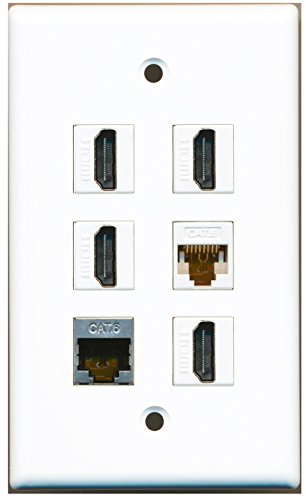 RiteAV - 4 HDMI 1 Port Shielded Cat6 Ethernet 1 Port Cat6 Ethernet White Wall Plate
