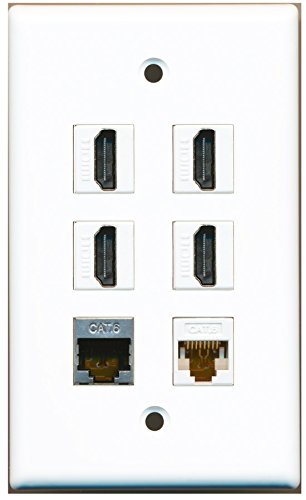 RiteAV - 4 HDMI 1 Port Shielded Cat6 Ethernet 1 Port Cat6 Ethernet White Wall Plate