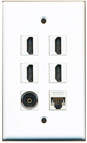 RiteAV - 4 HDMI 1 Port Toslink 1 Port Cat5e Ethernet White Wall Plate