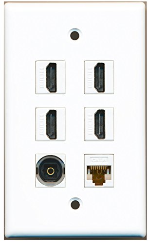 RiteAV - 4 HDMI 1 Port Toslink 1 Port Cat6 Ethernet White Wall Plate