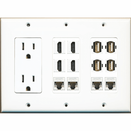 RiteAV 4 Hdmi 4 Cat5e 4 Usb A-A Power Outlet Wall Plate White