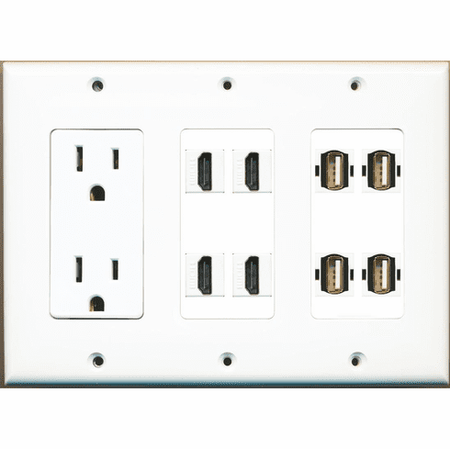 RiteAV 4 Hdmi 4 Usb A-A Power Outlet Wall Plate 3 Gang White