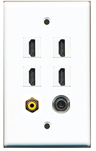 RiteAV - 4 HDMI and 1 - RCA Yellow and 1 - 3.5MM Port Wall Plate White
