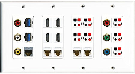 RiteAV 4 HDMI-Cat6 1 Shielded 7 Speaker 2 USB 3 Component Composite Wall Plate