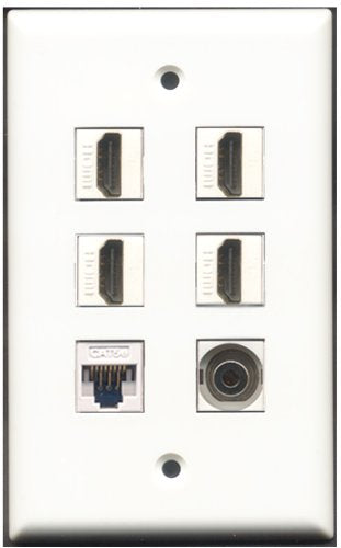 RiteAV - 4 Port HDMI 1 3.5mm 1 Cat5e Ethernet White Wall Plate