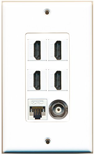 RiteAV - 4 Port HDMI 1 BNC 1 Cat5e Ethernet White Wall Plate Decorative