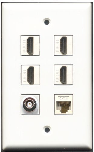 RiteAV - 4 Port HDMI 1 BNC 1 Cat6 Ethernet White Wall Plate