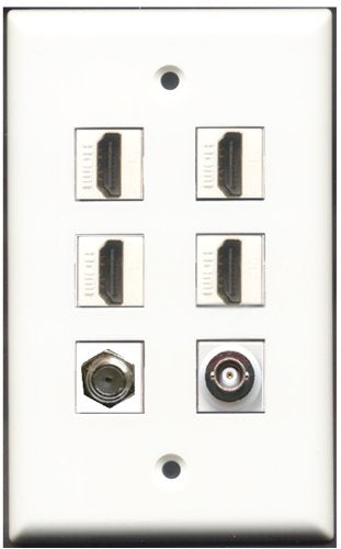 RiteAV - 4 Port HDMI 1 Coax Cable TV- F-Type 1 BNC Wall Plate